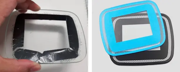 Zmanjšajte potepuško svetlobo/bleščanje: rob pokrovne leče je običajno treba natisniti s črnim ali drugim temnim mejnim črnilom (BMV), da skrijete notranje ožičenje, komponente, lepilno plast in izboljšate vizualni kontrast zaslona. Anti-UV črnilo je običajno funkcionalna nadgradnja tega mejnega črnila.